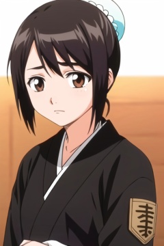 Chusen peach,1girl,bangs,black hair,black kimono,chinese clothes,hair bun,japanese clothes,long sleeves,looking at viewer,simple background,solo,upper body,white background,simple background,,<lora:1f38ae1303ae544ff5d4fccd0ea75211da44d5aa5ec14b4ba14f5e6916c4326e:0.7>,Chusen peach