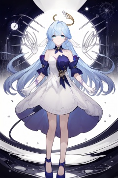 masterpiece,best quality,mysterious silhouette woman with hat,by Minjae Lee,Carne Griffiths,Emily Kell,Steve McCurry,Geoffroy Thoorens,Aaron Horkey,Jordan Grimmer,Greg Rutkowski,amazing depth,double exposure,surreal,geometric patterns,intricately detailed,bokeh,perfect balanced,deep fine borders,artistic photorealism,smooth,great masterwork by head of prompt engineering,\\\\\\\\\\\\\\zgn,1girl,long hair,halo,gloves,bangs,white dress,bare shoulders,blue hair,blue footwear<lora:EMS-311409-EMS:0.800000>
