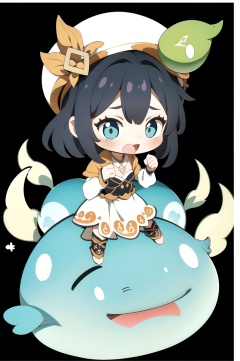 1girl, solo, (wearing a white slime hat:1.3), cute, chibi,