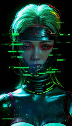<lora:xl-shanbailing-1213Glitch_effect:1.1>,bailing_glitch_effect,1girl,hime cut,white hair,red clothes,a woman with a futuristic look in the dark,solo,smile,blonde hair,simple background,shirt,closed eyes,yellow eyes,upper body,white hair,teeth,signature,armor,black eyes,from side,english text,lips,looking to the side,bodysuit,profile,mask,shadow,glowing,looking away,expressionless,looking down,half-closed eyes,black background,portrait,close-up,backlighting,reflection,science fiction,realistic,nose,mouth mask,logo,chromatic aberration,light,dark,cable,cyborg,hair slicked back,dark background,neon trim,gas mask,mechanical parts,cyberpunk,glitch,hologram,(Buddha demon mixed,god ghost integration:1.3).masterpiece,best quality,(Darkgiants:1.3),(an alien god:1.3) of (Therianthropy:1.3) sitting on a shrine,(Ancient Chinese Legend:1.2)(chinese style:1.3),bracelet,earrings,facial_hair,instrument,japanese_clothes,jewelry,(shanze:1.2),(shanhaijing:1.5),(Glow:1.4),(upload:1.5),(Cyber City:1.2),(data cable:1.4)(religion:1.3)(ritual:1.2)(Future:1.2),(Outer Planet:1.1),