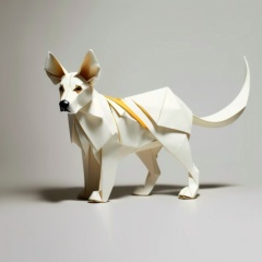 ((HRD, HUD, 8K)),((masterpiece, best quality)), highly detailed,Origami, simple background, grey background, no humans, solo, standing, full body, looking at viewer, pokemon (creature), looking at viewer, standing, dog, <lora:20240116-1705346381042:1>