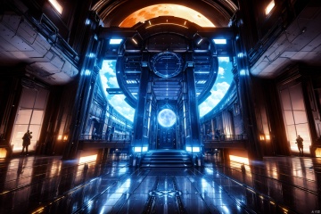 airship  arch  architecture  artist name  bridge  building  church  city  cityscape  clock  clock tower  cloud  cloudy sky  fantasy  glowing  moon  no humans  outdoors  reflection  scenery  science fiction  signature  sky  skyscraper  stairs  tower