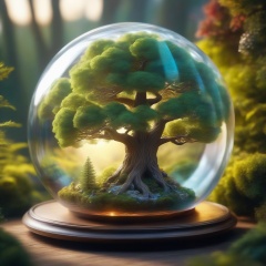 a majestic tree living inside a glass ball, intricate detail, ornate, best quality, hyperdetailed, absurdres, micro world, dramatic light, atmospheric, vivid detail, vibrant, unusual beauty, subsurface scatter, ambient occlusion, photorealistic, cg, masterpiece, award winning