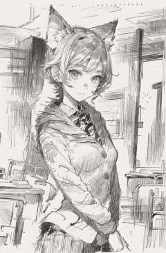 ultra detailed(sketch:1.2),graphite,( monocolour:1.3)1girl,animal ear,school uniform,classroom <lora:米古诺夫:1.5>