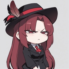 masterpiece, best quality, <lora:JXXLV1-000062:1> <lora:寺田てらXL-000021:1> 1girl, red hair, hat, hat feather,chibi, scowl