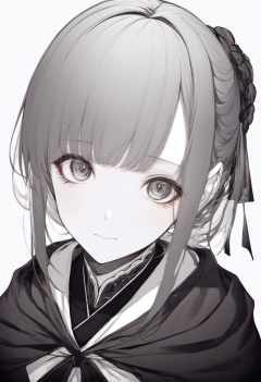 masterpiece, best quality<lora:sd_xl_dpo_lora_v1-128dim:1>,1girl, solo, white background, looking at viewer, upper body, simple background, bangs, monochrome, closed mouth  , <lora:hitoimimXLlokr4f-000053:1>