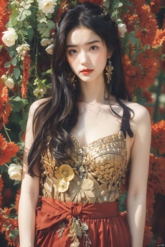 1girl, long hair, flower, Lisianthus, in the style of red and light azure, dreamy and romantic compositions, red, ethereal foliage, playful arrangements, fantasy, high contrast, ink strokes, explosions, over exposure, purple and red tone impression, abstract, whole body capture,
