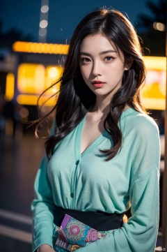 (masterpiece, best quality, ultra-detailed, highres, best illustration),1girl, solo,(male focus:0.8), transgender male,  red hair, green hair, heterochromia, purple eyes, two tone hair, ,side lighting, lustrous skin,(shine), (shiny skin, cetlic elements, norse heritage), ray tracing, shirt, wind swept hair, detailed hair, detailed face, ,depth_of_field,very detailed background,extreme light and shadow,(detailed eyes) , perfect anatomy, (zentangle, mandala, tangle, entangle), dynamic angle, wide shot, upper body, city scape, extreme light and shadow, night sky