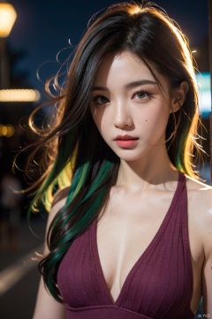 (masterpiece, best quality, ultra-detailed, highres, best illustration),1girl, solo,(male focus:0.8), transgender male, red hair, green hair, heterochromia, purple eyes, two tone hair, ,side lighting, lustrous skin,(shine), (shiny skin, cetlic elements, norse heritage), ray tracing, shirt, wind swept hair, detailed hair, detailed face, ,depth_of_field,very detailed background,extreme light and shadow,(detailed eyes) , perfect anatomy, (zentangle, mandala, tangle, entangle), dynamic angle, wide shot, upper body, city scape, extreme light and shadow, night sky