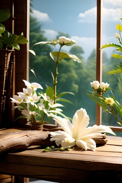 HZPJCT,product photography,still life,flower,no humans,leaf,blue flower,yellow flower,