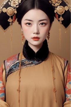 <lora:贵妃:1>,best quality,masterpiece,women of the qing dynasty in china,solid color background,beige_background,