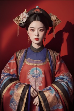 <lora:贵妃:0.8>,best quality,masterpiece,women of the qing dynasty in china,red background,message,