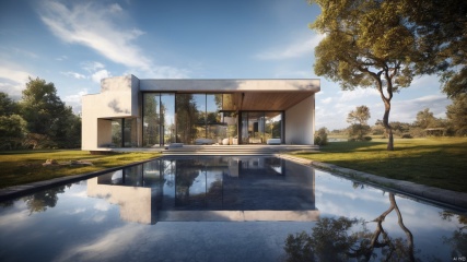 , reflection, masterpiece, true light and shadow, wide Angle, outdoors, sky, day, cloud,