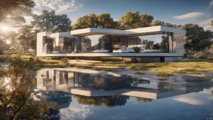 , tree, blue sky, no humans, nature, scenery, SDXL, Villa