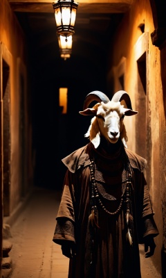 cinematic photo ghost, supernatural theme, eerie atmosphere, dim lighting, goat head mask, traditional costume, feathers, dread, ancient architecture, shadowy corridor, cultural symbolism, psychological horror, warm color tones, mysterious figure, folklore, suspenseful. <lora:Horror_ghost:0.8>,  . 35mm photograph, film, bokeh, professional, 4k, highly detailed