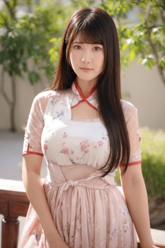 (global illumination, reality,ray tracing, HDR, unreal rendering, reasonable design, high detail, masterpiece,best quality, ultra high definition, movie lighting),1girl,outdoor,looking_at_viewer,side_blunt_bangs,china_dress,chinese_style,big breasts,pose,solo,1girl,black hair,black eyes,qipao,<lora:日本女优小鳥遊01:0.8>,