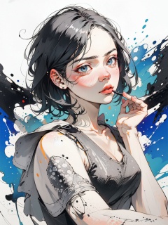 ((Character Sketch XCYP), (Black  and  White Pen  and  Ink Drawing: 2.0), High Abstract, Minimalist Style, Thick Lines, Smooth Lines, Clean, Perfect Composition, High Contrast, Strong Black  and  White Contrast, Masterpiece, Award-Winning Piece, Best Quality, Masterpiece, 8K, High Resolution.)perfect hand.8K, 4K, FTL, Bloom, Very Detailed, Color: 1.4, Max Detail, Very Detailed, Super Detailed Painting, Vivid Color: 1.1, A Girl, Alone, Spectator (Moonlight Night), Grass, Denim Photo, Hair, Expression, Nose, Mouth, Eyelashes, Lipstick, Eyeshadow, Body, Pose, Expression, , Short Hair, T-Shirt, Jeans, ...
