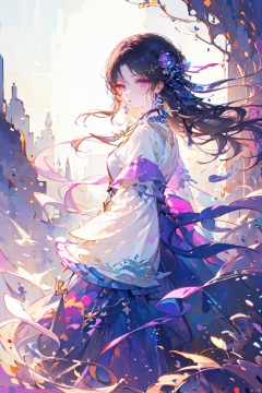 (masterpiece), (best quality), 1 girl,(Purple light effect),hair ornament,jewelry,looking at viewer,floating hair