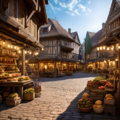 (masterpiece:1.2), (best quality,:1.2), 8k, HDR, ultra detailed, ((photorealistic)), professional light, cinematic lighting, fashion photography, ambient lighting,<lora:detail_slider_v4:2.5>, background, a medieval town square with shops and market stalls, FanSe, <lora:FantasySettlement-10:1>, epiCPhoto