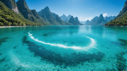 (Waterfall 1.9), (sea 1.0),(Jet hole blue flame and lightning 1.0),(Adequate sunlight 1.5),(Optical materials 1.0),(Water in glass materials 1.5),(beach 1.0),(wonderland 1.0),Overlooking,,(sea 1.9),,Representative,boutique, Ultra HD, , reflection, masterpiece, true light and shadow, wide Angle, outdoors, sky, day,, blue sky, (no humans 99.9),nature, scenery, Water, beach, (High Quality), Best Quality, (4K), 8K, Super Detail, (Full Detail), (Masterpiece), (Realistic), Super Detail, (Exquisite Detail), Intricate, Traditional Chinese Ink Painting,Mountain peaks, blue sky, flowing water,Wild goose, Scenery, 1girl<lora:EMS-301446-EMS:0.800000>, <lora:EMS-320600-EMS:0.000000>, <lora:EMS-304787-EMS:1.000000>, <lora:EMS-303749-EMS:1.000000>
