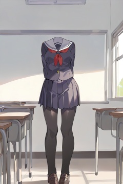invisible person,1girl,school uniform,from front,standing pose,classroom,masterpiece,cartoon,anime