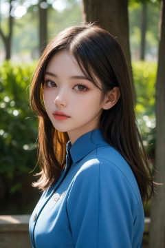 1girl,blue uniform,portrait,outdoors,