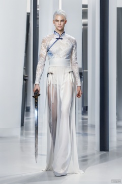 (masterpiece, best quality:1.5), 1boy, blue eyes, closed mouth, eyelashes, face, floating hair, glowing, holding,Ice Magic,Ice crystal,Icicles,ice,Chinese Ice Dragon, holding weapon,Chinese clothing, looking at viewer, male focus, solo, sword, weapon, white hair, 1BOY, glow