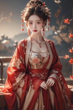 An antique beauty, busted, elegant,hydress,Flower branch,  medium breast,
