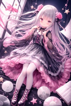 white pantyhose, wide shot, cross-laced footwear, gothic lolita, lolita fashion,