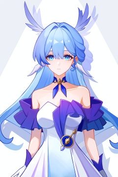 1girl,robin,head wings,strapless dress,white gloves,white dress,purple dress,collarbone,<lora:知更鸟v15:1:lbw=char>,blue hair,<lora:nai3画风bysdlion-000035:0:lbw=paint>,, (masterpiece,best quality,high quality:1.4),absurdres,