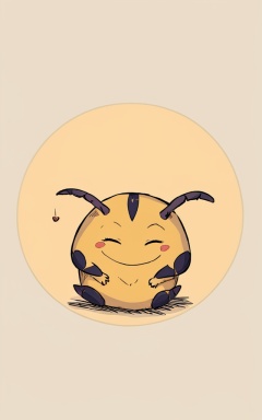 comic_style, children's_painting_style, no humans, sitting, simple background, solo, yellow background, closed eyes, full body, circle, beige background, signature, holding, two-tone background, shadow, pokemon, ((creature)), facing viewer, head tilt, smile, heart, bug, white background, looking at viewer, open mouth, tan background, sleeping, brown background, 1girl<lora:好吃米-儿童绘本:0.8>,