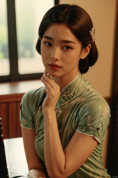 (1girl:1.3),(best quality, masterpiece, ultra-high resolution, 4K, HDR, UHD, 64K, official art), (photorealistic:1.3), (realistic:1.3), depth of field, (portrait:1.3),(sfw:1.4),, qipao