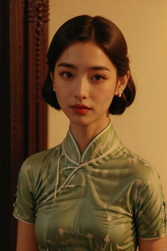 (1girl:1.3),(best quality, masterpiece, ultra-high resolution, 4K, HDR, UHD, 64K, official art), (photorealistic:1.3), (realistic:1.3), depth of field, (portrait:1.3),(sfw:1.4),, qipao