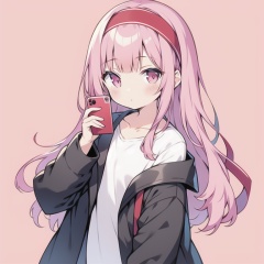 <lora:mine:1>,1girl, solo, long hair, pink hair, phone, shirt, white background, red hairband, holding, simple background, looking at viewer, jacket, cellphone, white shirt, holding phone, upper body, hairband, blush, black jacket, closed mouth, pink eyes, bangs, smartphone, long sleeves, open jacket, open clothes, collarbone, sidelocks, red ribbon, hand up