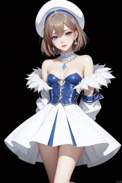 Realistic style, cinematic work, 8K wallpaper, masterpiece, very realistic quality, best quality, masterpiece, high-level, high-resolution,,,Edge lighting, dual tone lighting, soft lighting, The illuminated surface of the material has bright spots and highlights, which flicker and have a mirror effect when reflected, There are sparkling spots on the armor,,,1 girl, mature female, solo, full body, looking at viewer, lace, strong rim light, Standard proportion of female body, golden proportion of female body,,,Standing, standing posture, Sexy full body standing posture,,,,(HDN301, cowboy lens,1girl, blue eyes, hair between eyes, short hair, brown hair, white headwear, bangs, blush,bare shoulders, dress, long sleeves, fur trim, hat, shoes, white dress, bare legs, short dress, spaghetti strap, ribbon, wide sleeves, off shoulder, open clothes, ankle ribbon, jacket, frilled hat, frills, cross-laced clothes, leg ribbon, buttons, small breasts, dot nose, open jacket, breasts, sleeve cuffs, sleeves past wrists, white ribbon, tareme, pleated dress, coat, pom pom, platform footwear, white jacket, blue ribbon,:1.2),,bare shoulders, off shoulder, black hairband, bikini bottom only, short dress, swimsuit, pleated dress, bikini, floating hair, blush, ass visible through thighs, skirt,White high-heeled shoes,:1.2),,,colorful,(detailed skin: 1.3), (detailed face: 1.3),clear focus,delicate,(mature women: 1.2),(glossy skin+glossy skin: 1.4),(sweating: 1.1),(big_eyes),red_ eyeshadow,long_ Eyelashes, red lips,,,simple background, grey background,,,(Diamond hair accessories, diamond necklaces, diamond earrings, diamond earrings, clothes embedded with diamonds, armor embedded with diamonds,:1.3), HDN301<lora:EMS-325509-EMS:0.230000>