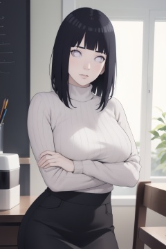 hinata\(boruto\),1girl,breast hold,denim,large breasts,long hair,looking at viewer,nose,pencil skirt,photo \(medium\),realistic,ribbed sweater,skirt,solo,sweater,<lora:lbc_Hyūga Hinata_Naruto24324_v1.0:1>,