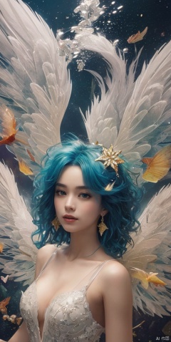 (1girl:1.2),Chinese girls,stars in the eyes,(pure girl:1.1),(white dress:1.1),(full body:0.6),There are many scattered luminous petals,bubble,contour deepening,(white_background:1.1),cinematic angle,,underwater,adhesion,green long upper shan, 21yo girl,jewelry, earrings,lips, makeup, portrait, eyeshadow, realistic, nose,{{best quality}}, {{masterpiece}}, {{ultra-detailed}}, {illustration}, {detailed light}, {an extremely delicate and beautiful}, a girl, {beautiful detailed eyes}, stars in the eyes, messy floating hair, colored inner hair, Starry sky adorns hair, depth of field, large breasts,cleavage,blurry, no humans, traditional media, gem, crystal, still life, Dance,movements, All the Colours of the Rainbow,zj,