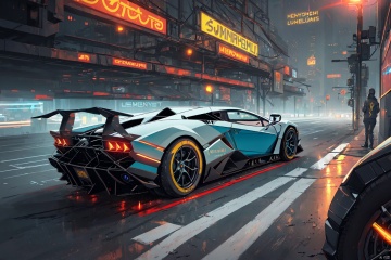 masterpiece, best quality, detailed, realistic, ((cyberpunk Lamborghini Hermes racing))\(\with beaming from the tailpipe and glowing tires\),BREAK,night,ground smoke, light up the surroundings,cinematic lighting,highly detailed, lumen render, 8k,bokeh