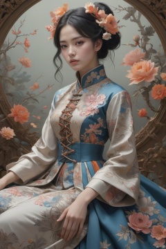 official art, HUBG_Rococo_Style(loanword), hanfu, unity 8k wallpaper, ultra detailed, beautiful and aesthetic, masterpiece, best quality, (zentangle, mandala, tangle, entangle), (fractal art:1.3), 1girl, extremely detailed, dynamic angle, cowboy shot, the most beautiful form of chaos, elegant, a brutalist designed, vivid colours, romanticism, by james jean, roby dwi antono, ross tran, francis bacon, michal mraz, adrian ghenie, petra cortright, gerhard richter, takato yamamoto, ashley wood, atmospheric, ecstasy of musical notes, streaming musical notes visible,