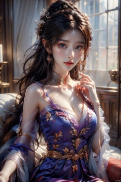 Masterpiece, Best Quality, HD 16K, a girl, bust, purple theme, delicate features, traditional dress, hair accessories, film-level lighting rendering, lifelike, details enhanced,