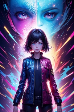 masterpiece,best quality,ultra high res,1girl,tashan,colorful,fractal art,<lora:踏山听海【炫彩】-v1:0.7>,A determined detective who won’t stop until they’ve caught the culprit behind a series of mysterious crimes.,