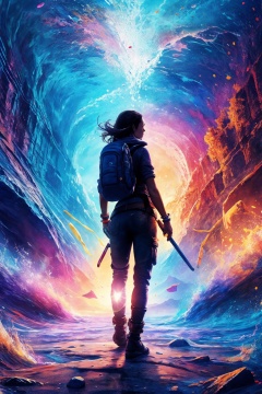 masterpiece,best quality,ultra high res,1girl,tashan,colorful,<lora:踏山听海【炫彩】-v1:0.7>,A daring explorer who braves uncharted territories in search of new discoveries and adventures.,Sapphire theme,