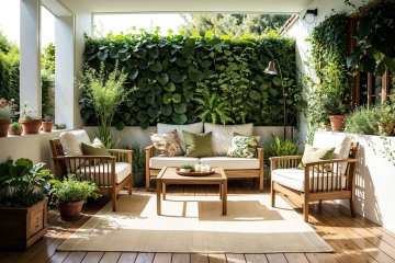 Garden, courtyard, warm, courtyard design, green plants, leisure chair, sun room, vegetable plot, plant wall