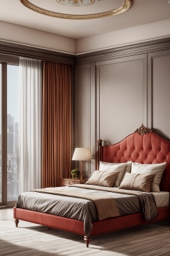 Ultra-realistic 8k CG,masterpiece,best quality,Highly detailed,Professional,extreme detail description,red theme,indoors,bedroom,bed,frame,curtains,<lora:Yue暖馨室内设计v1:0.7>,<lora:add_more_details:0.6>,dome light,(leafeon:1.3),wardrobe,