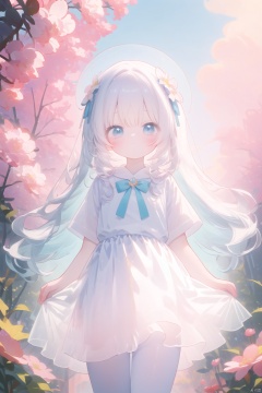 8k Wallpaper,grand,(((masterpiece))), (((best quality))), ((ultra-detailed)), (illustration), ((an extremely delicate and beautiful)),dynamic angle,rainbow hair,detailed cute anime face,((loli)),(((masterpiece))),an extremely delicate and beautiful girl,flower,cry,water,corrugated,flowers tire,broken glass,(broken screen),atlantis,transparent glass, ears down, loli, 1girl, white pantyhose