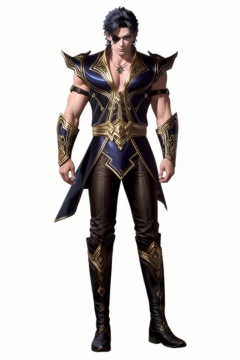 ((HRD, HUD, 8K)),((masterpiece, best quality)), highly detailed, soft light,1boy, solo, black hair, brown eyes, eyepatch, scar, scar on face,necklace, jewelry, muscular,armor, boots, simple background, white background, full body, long legs, standing, looking at viewer, <lora:20240325-1711375441925:0.7>