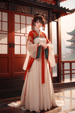 <lora:GoodHands-手beta2:1>,solo,1girl,outdoors,standing,blonde hair,full body,<lora:0363 Shangyuan Ankang_v2-000003:1>,ruanyi0363,hanfu,wide sleeves,see-through,chinese clothes,red dress,robe,Chinese ancient pagoda,, best quality,masterpiece,highres,official art,extremely detailed cg unity 8k wallpaper