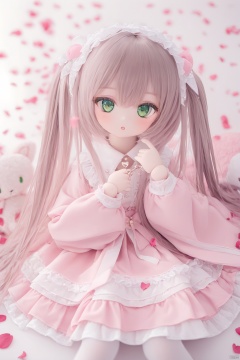 doll, 1girl, long hair, green eyes,  twintails, lolita fashion,