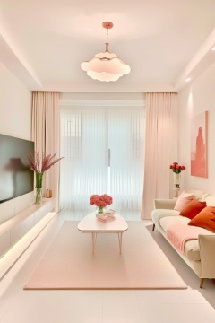 ((HRD, HUD, 8K)),((masterpiece, best quality)), highly detailed, soft light,Parlour, no humans, couch, flower, table, indoors, curtains, scenery, vase, window, lamp, plant, pillow, carpet, red flower, rose, rug, cushion, book, painting (object), chair, <lora:20240326-1711424345012:1>