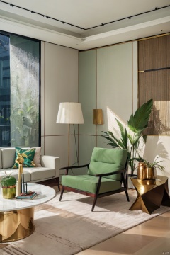 Dream homesi,Elegant urban living room, herringbone parquet flooring, sage green and off-white walls, contemporary velvet sofas, urban-chic interior design, geometric patterned throw pillows, cityscape wall murals, sleek metal and glass coffee table, monochromatic color scheme, industrial-style lighting fixtures, plush area rug, high ceilings, large windows, urban jungle theme, potted tropical plants, brass plant stands, abstract metal sculptures, floating wooden shelves, curated photography books, statement floor lamp with geometric shade, luxe fabric textures, interactive smart home elements, minimal yet cozy ambiance.